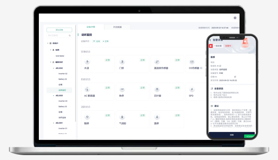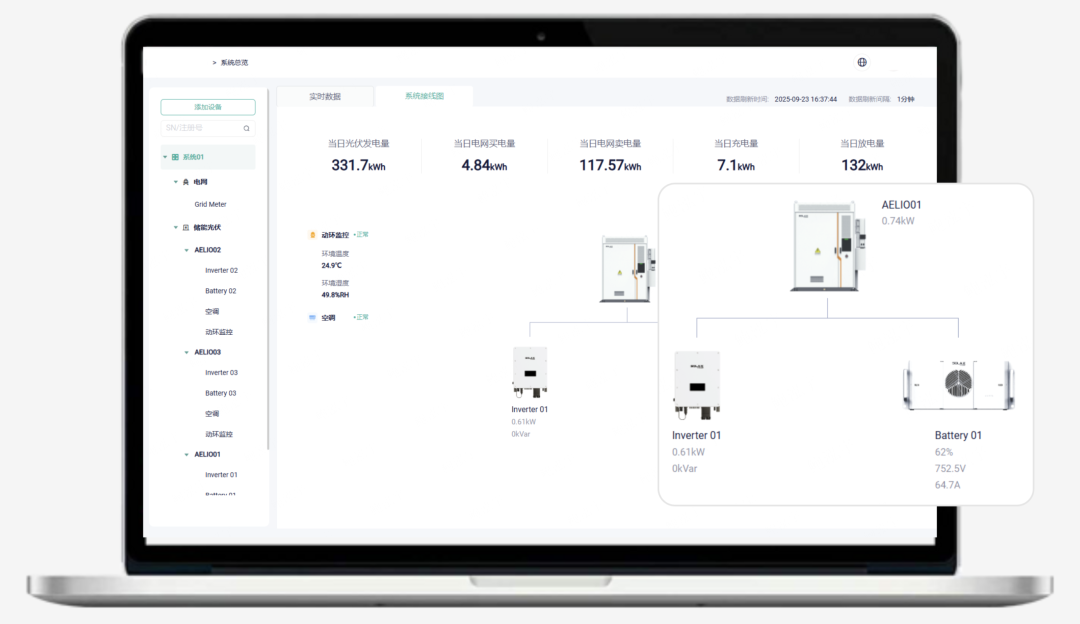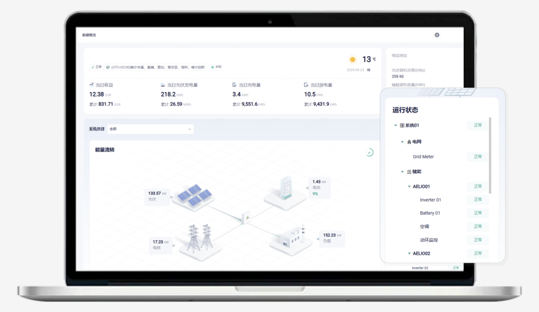直观呈现核心数据:电站实时功率、累计收益、告警信息一目了然。